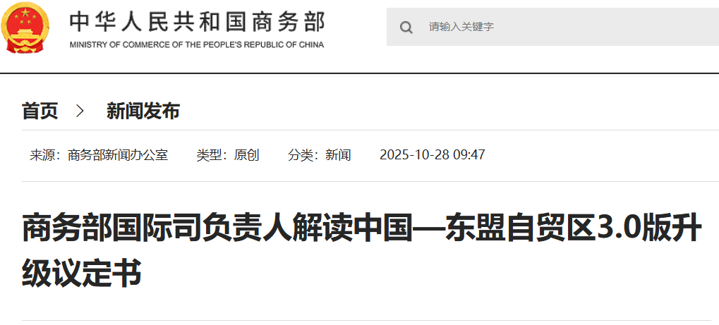 - 10-292025 商務部:中國與東盟首次對綠色經(jīng)濟、新能源、清潔能源、可持續(xù)金融、綠色技能等作出明確定義