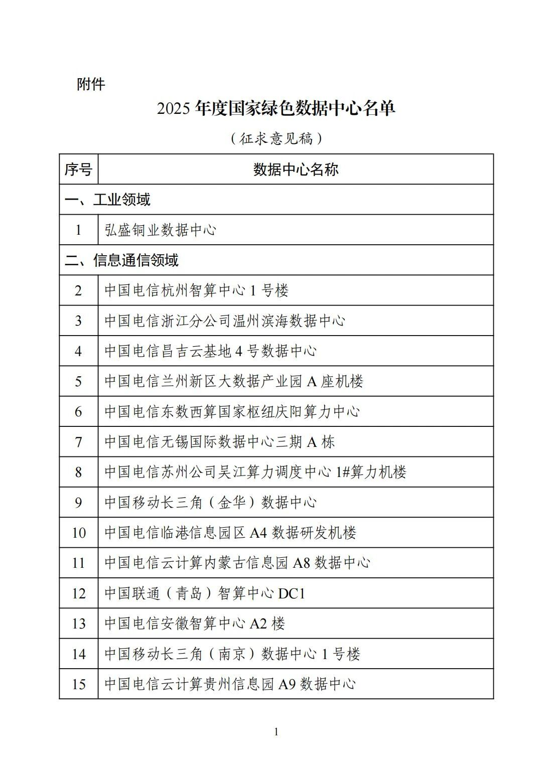 10月28日,工信部節(jié)能與綜合利用司公示2025年度國家綠色數(shù)據(jù)中心名單。根據(jù)《工業(yè)和信息化部辦公廳國家發(fā)展改革委辦公廳商務部辦公廳金融監(jiān)管總局辦公廳國管局辦公室國家能源局綜合司關于組織開展2025年度國家綠色數(shù)據(jù)中心推薦工作的通知》(工信廳聯(lián)節(jié)函〔2025〕279號),現(xiàn)將2025年度國家綠色數(shù)據(jù)中心名單予以公示,公示時間為2025年10月28日至11月3日。